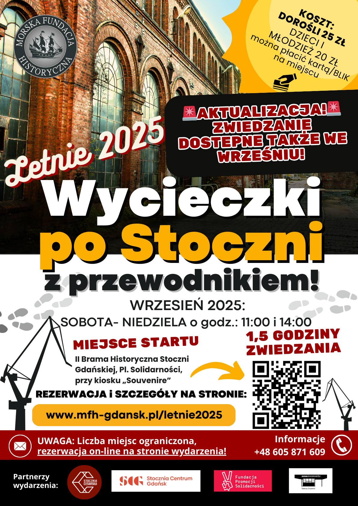 Letnie spacery historyczne 2025 – letnie wycieczki z przewodnikiem po stoczni! 🚢🌊🌞 AKTUALIZACJA WRZEŚNIOWA